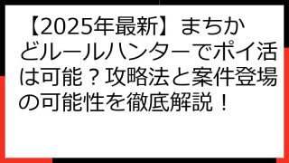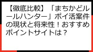 まちかどルールハンター 【徹底比較】「まちかどルールハンター」ポイ活案件の現状と将来性!おすすめポイントサイトは?