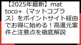 - 【2025年最新】mattoco+(マットコプラス)ポイ活完全ガイド!高還元案件を徹底比較&攻略法
